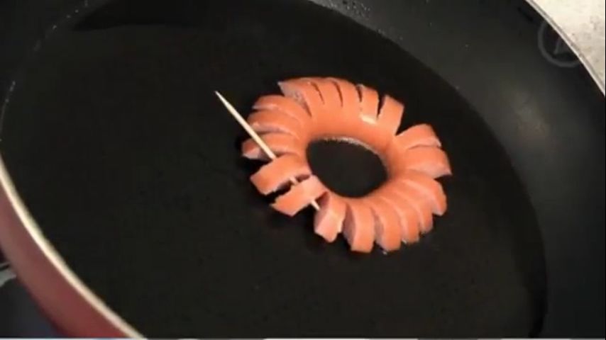 Типичным набором продуктов к завтраку считаются яйцо и сосиски. Но можно сделать из этих 2-х ингредиентов довольно оригинальный завтрак – яичница в виде цветка. |